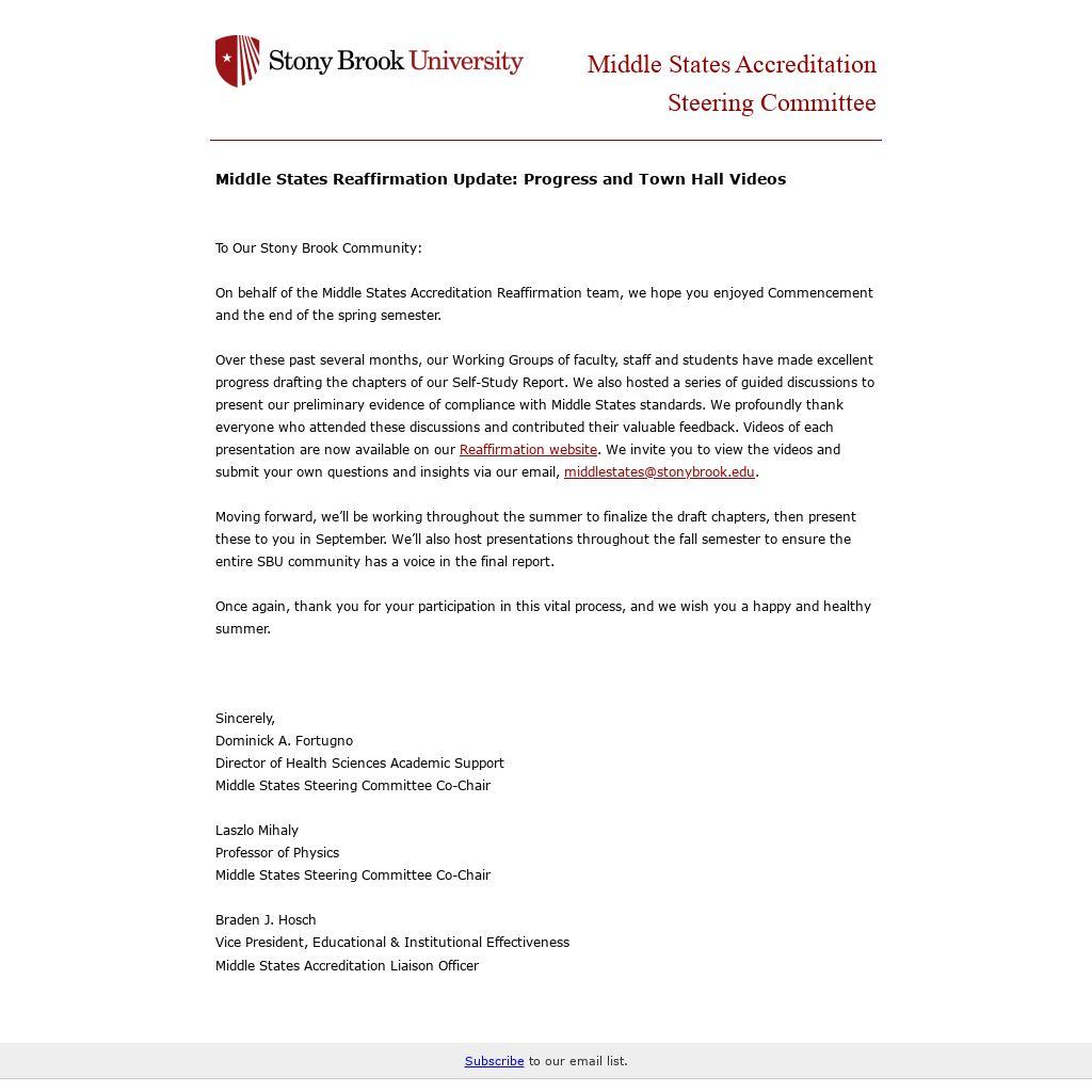 On behalf of the Middle States Accreditation Reaffirmation team, we hope you enjoyed Commencement and the end of the spring semester.