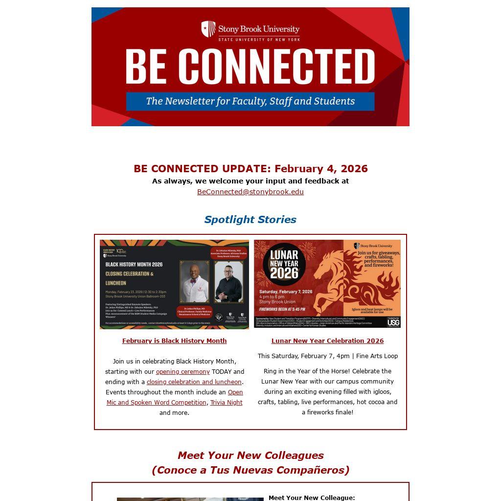 Stony Brook University | 100 Nicolls Road | Stony Brook, NY 11794 | BeConnected@stonybrook.edu