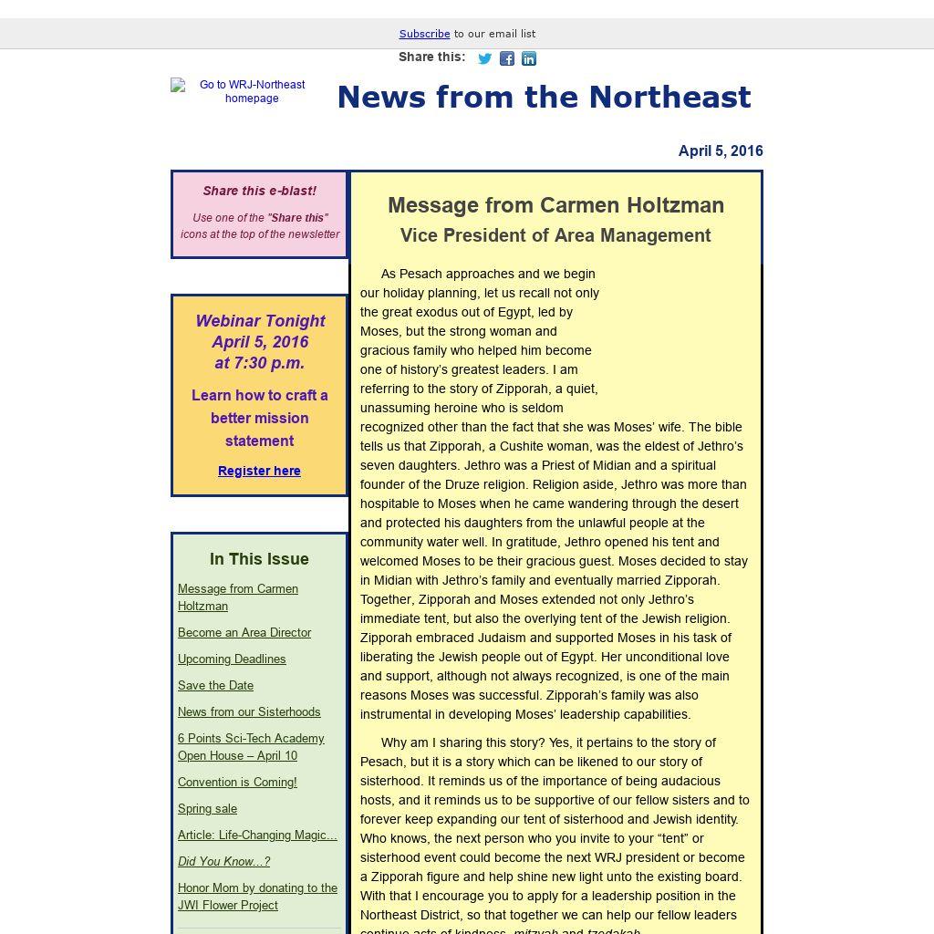 Using Gmail's Tab Layout? Drag this message to your Primary inbox so you won't miss any e‑blasts from WRJ Northeast District