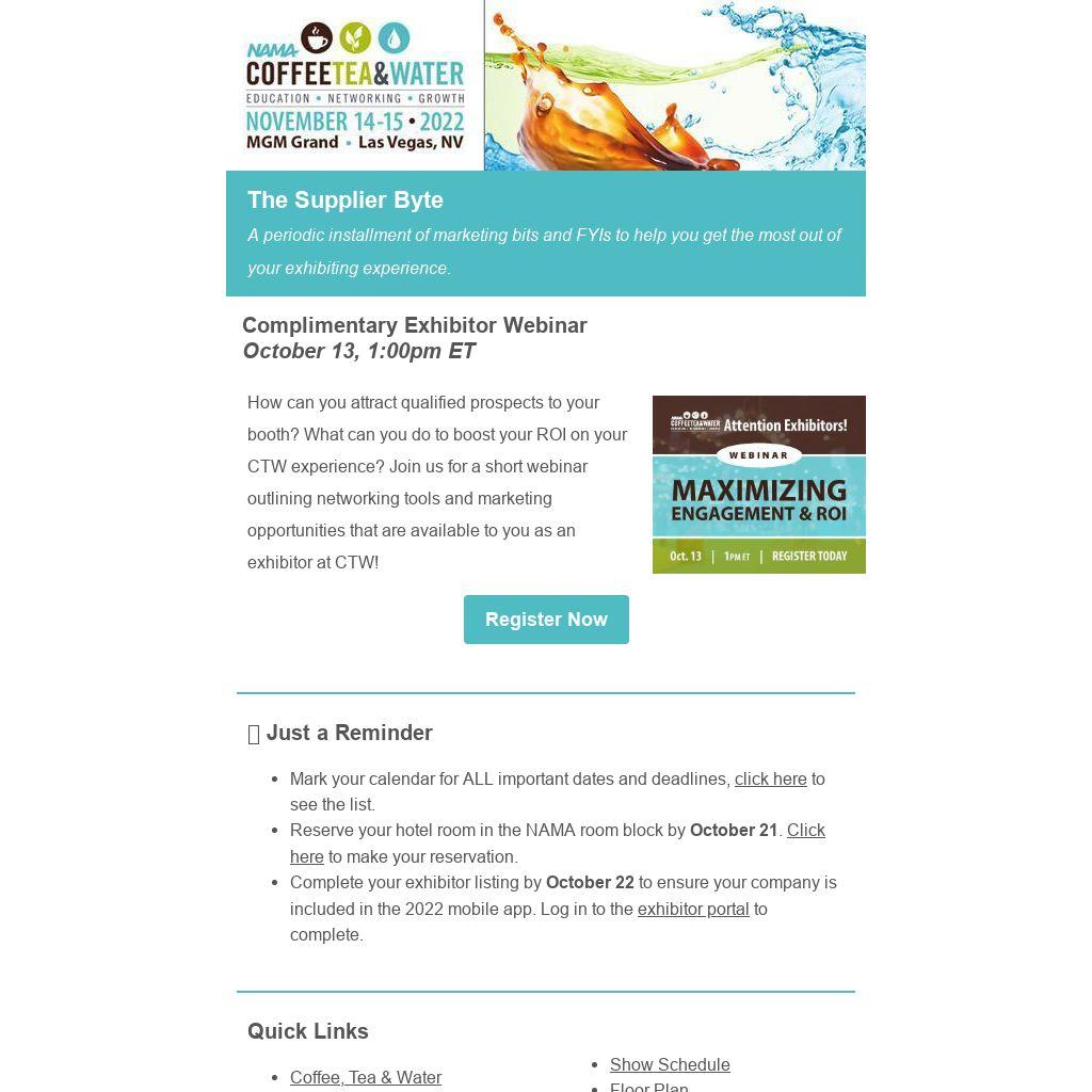 The Supplier Byte A periodic installment of marketing bits and FYIs to help you get the most out of your exhibiting experience.