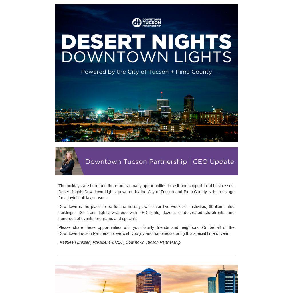 Please share these opportunities with your family, friends and neighbors. On behalf of the Downtown Tucson Partnership, we wish you joy and happiness during this special time of year.