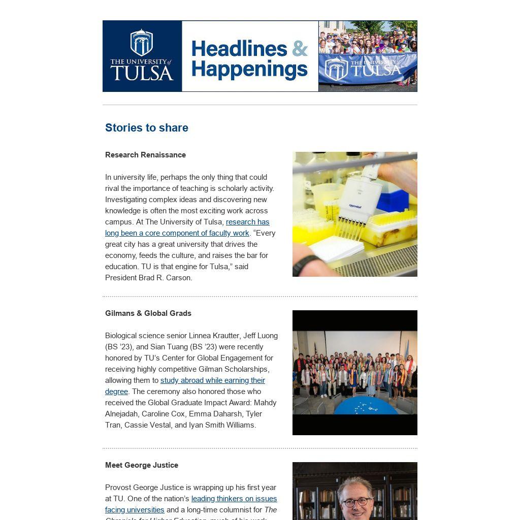 Biological science senior Linnea Krautter, Jeff Luong (BS ’23), and Sian Tuang (BS ’23) were recently honored by TU’s Center for Global Engagement for receiving highly competitive Gilman Scholarships, allowing them to study abroad while earning their degree. The ceremony also honored those who received the Global Graduate Impact Award: Mahdy Alnejadah, Caroline Cox, Emma Daharsh, Tyler Tran, Cassie Vestal, and Iyan Smith Williams.