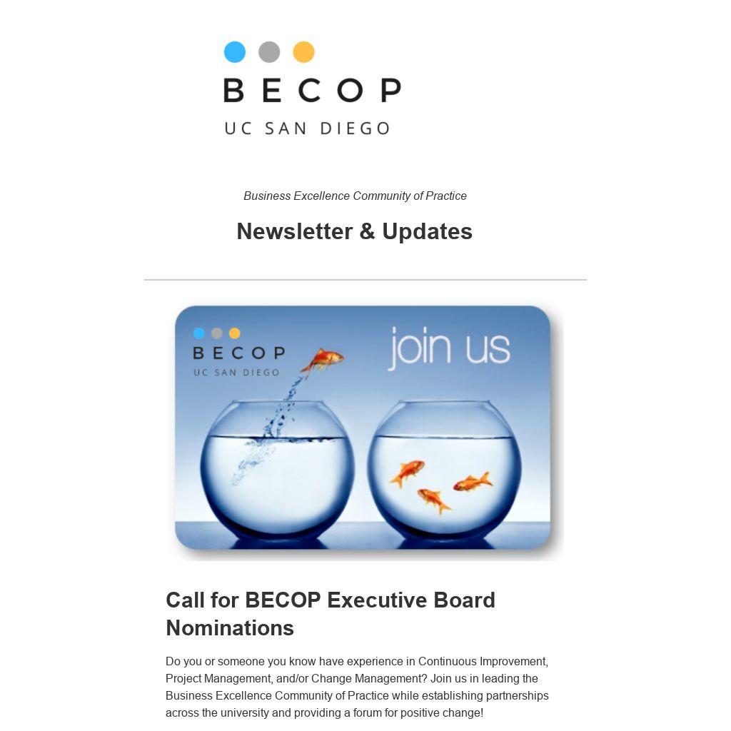 BECOP Recognition. Would you like to recognize someone in our Community of Practice? Email becop@ucsd.edu to nominate a colleague for their outstanding work!