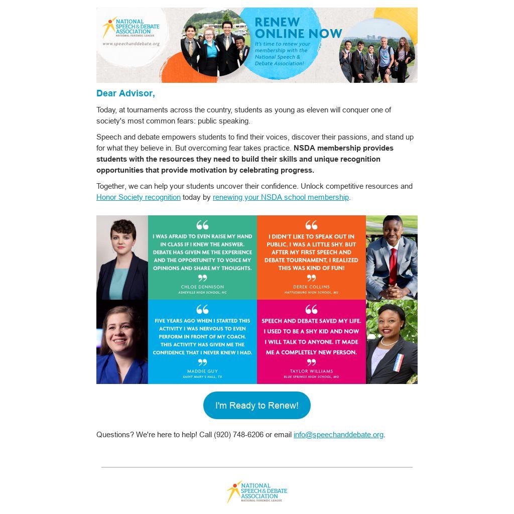 Speech and debate empowers students to find their voices, discover their passions, and stand up for what they believe in. But overcoming fear takes practice. NSDA membership provides students with the resources they need to build their skills and unique recognition opportunities that provide motivation by celebrating progress.