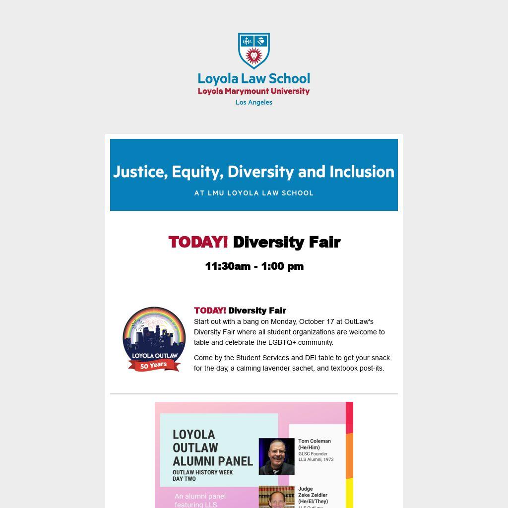 Start out with a bang on Monday, October 17 at OutLaw's Diversity Fair where all student organizations are welcome to table and celebrate the LGBTQ+ community.