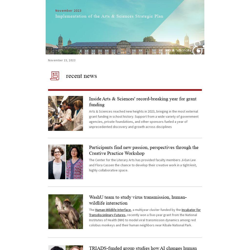Arts & Sciences reached new heights in 2023, bringing in the most external grant funding in school history. Support from a wide variety of government agencies, private foundations, and other sponsors fueled a year of unprecedented discovery and growth across disciplines
