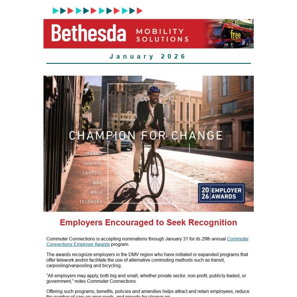Commuter Connections is accepting nominations through January 31 for its 29th annual Commuter Connections Employer Awards program.