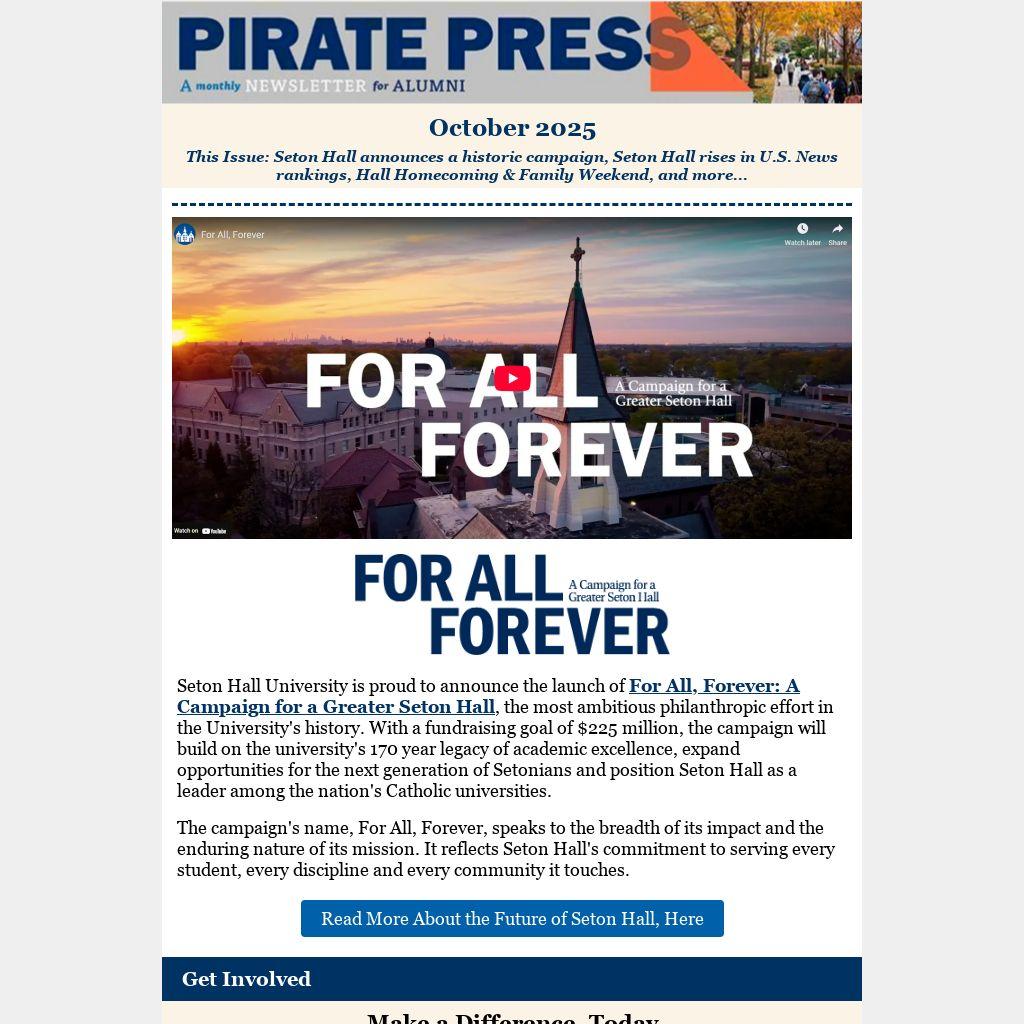 This Issue: Seton Hall announces a historic campaign, Seton Hall rises in U.S. News rankings, Hall Homecoming & Family Weekend, and more... |