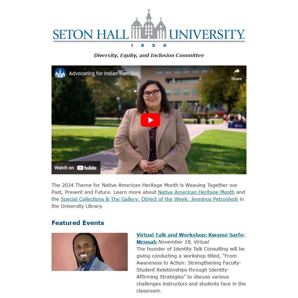 Our partners at EAB have developed a robust resource center that brings together a vast library of best practice DEIJ research, tools, and insights dedicated to "helping college and university leaders cultivate diversity, foster inclusion, promote equity, and fight for justice for their students, faculty, staff, and communities." All Seton Hall community members have access to this free resource. To sign up for a free account, use your SHU email address at eab.com.