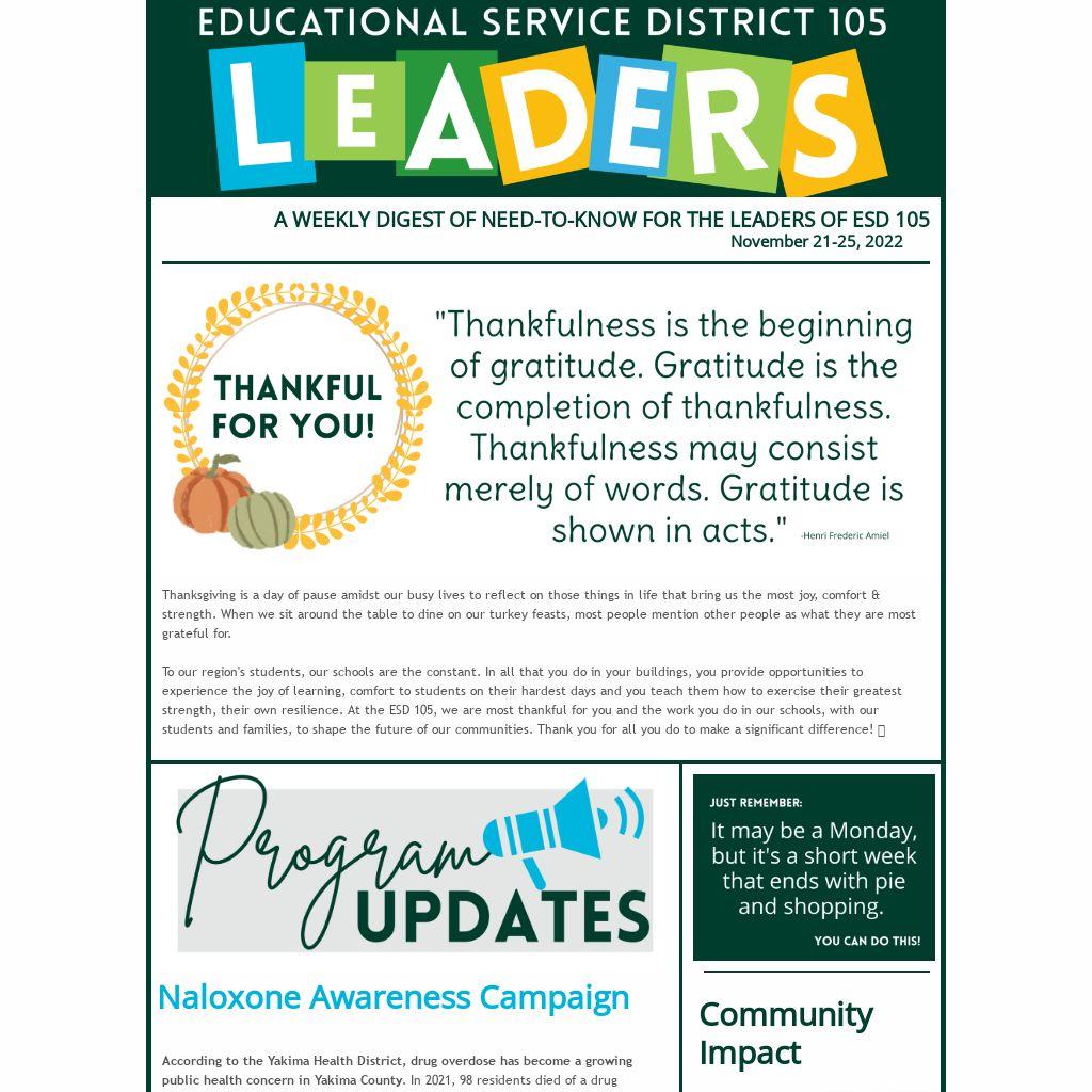 A WEEKLY DIGEST OF NEED-TO-KNOW FOR THE LEADERS OF ESD 105 |