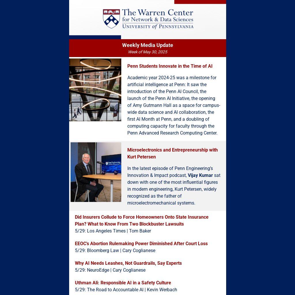 Academic year 2024-25 was a milestone for artificial intelligence at Penn: It saw the introduction of the Penn AI Council, the launch of the Penn AI Initiative, the opening of Amy Gutmann Hall as a space for campus-wide data science and AI collaboration, the first AI Month at Penn, and a doubling of computing capacity for faculty through the Penn Advanced Research Computing Center.