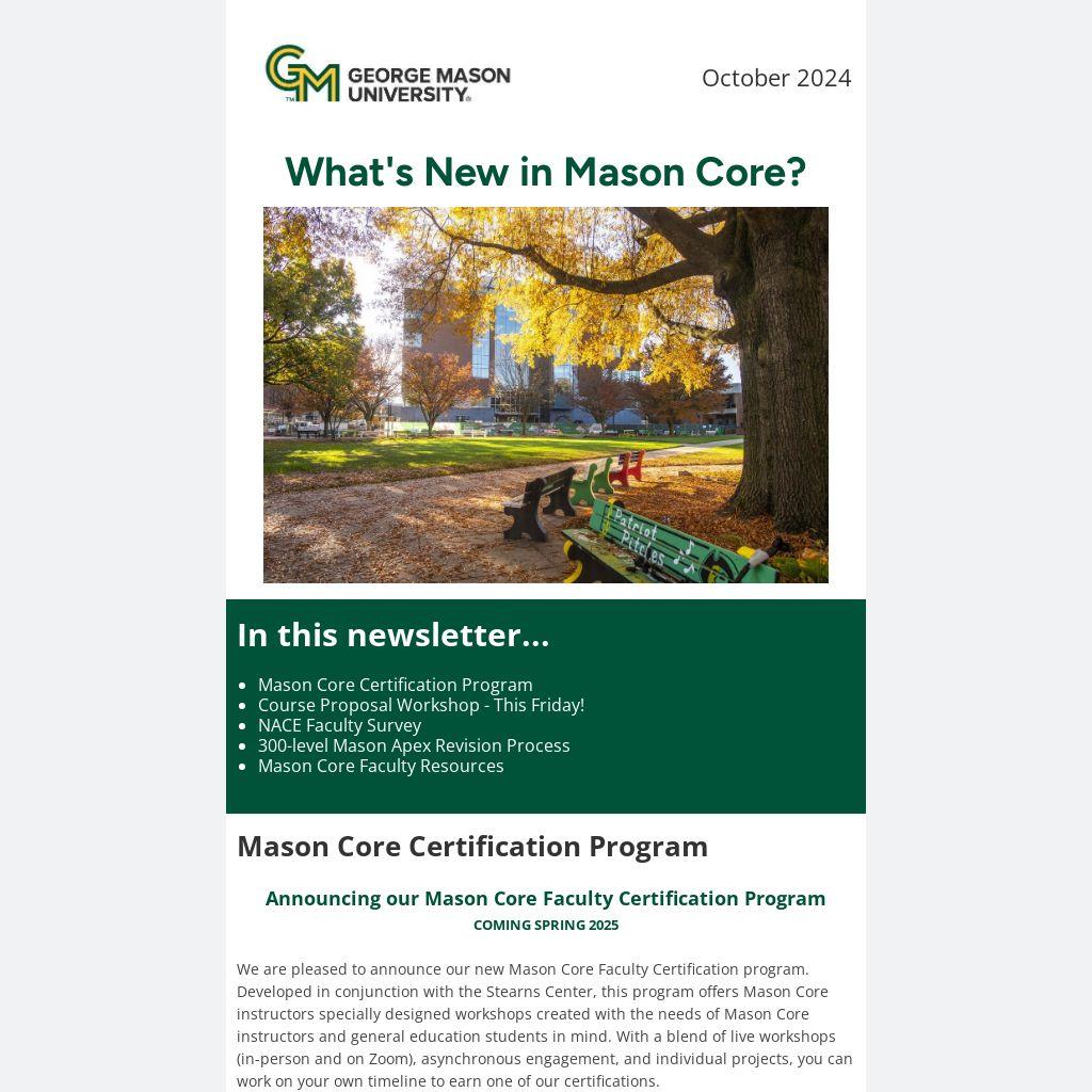 Announcing our Mason Core Faculty Certification Program