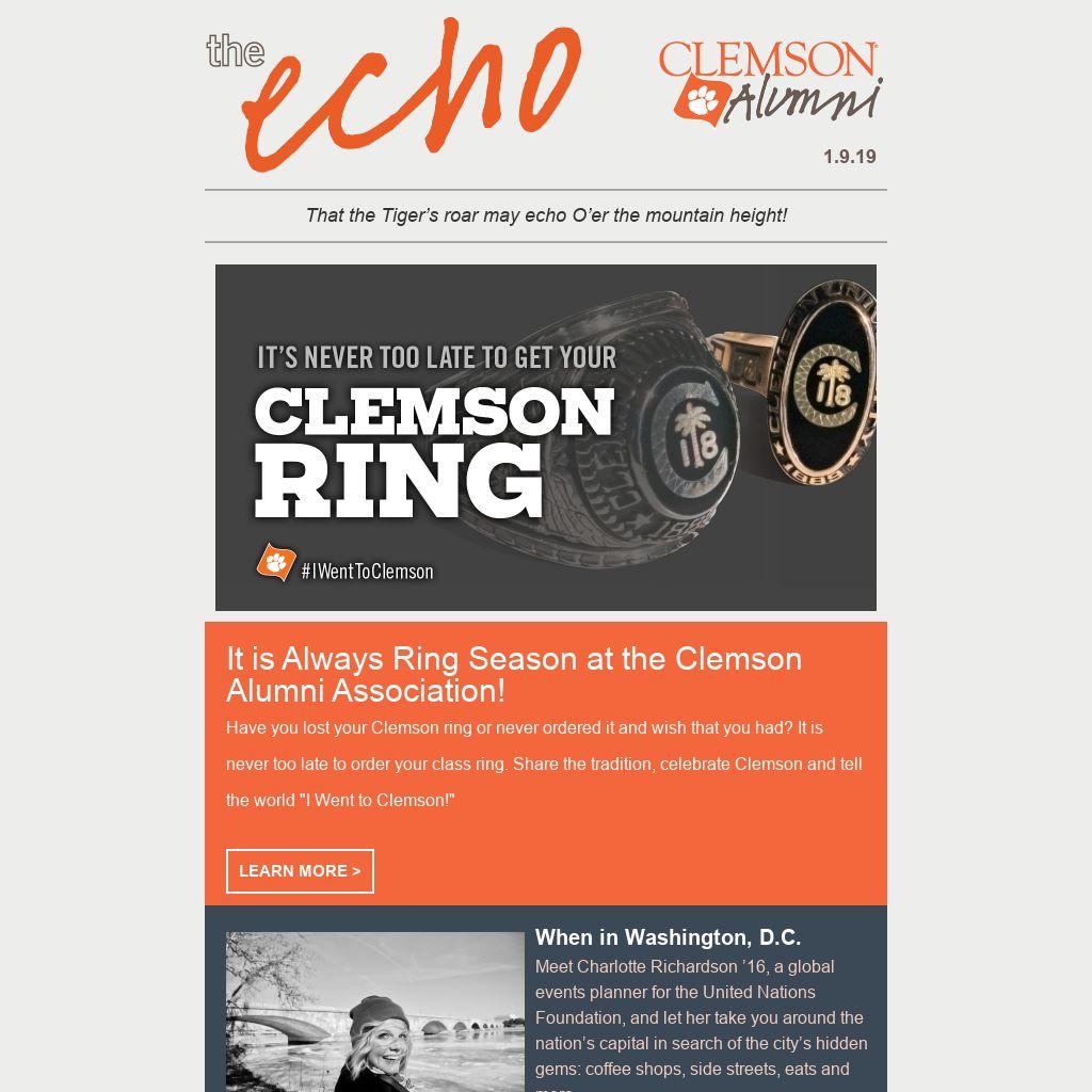 It is Always Ring Season at the Clemson Alumni Association! Have you lost your Clemson ring or never ordered it and wish that you had? It is never too late to order your class ring. Share the tradition, celebrate Clemson and tell the world "I Went to Clemson!"