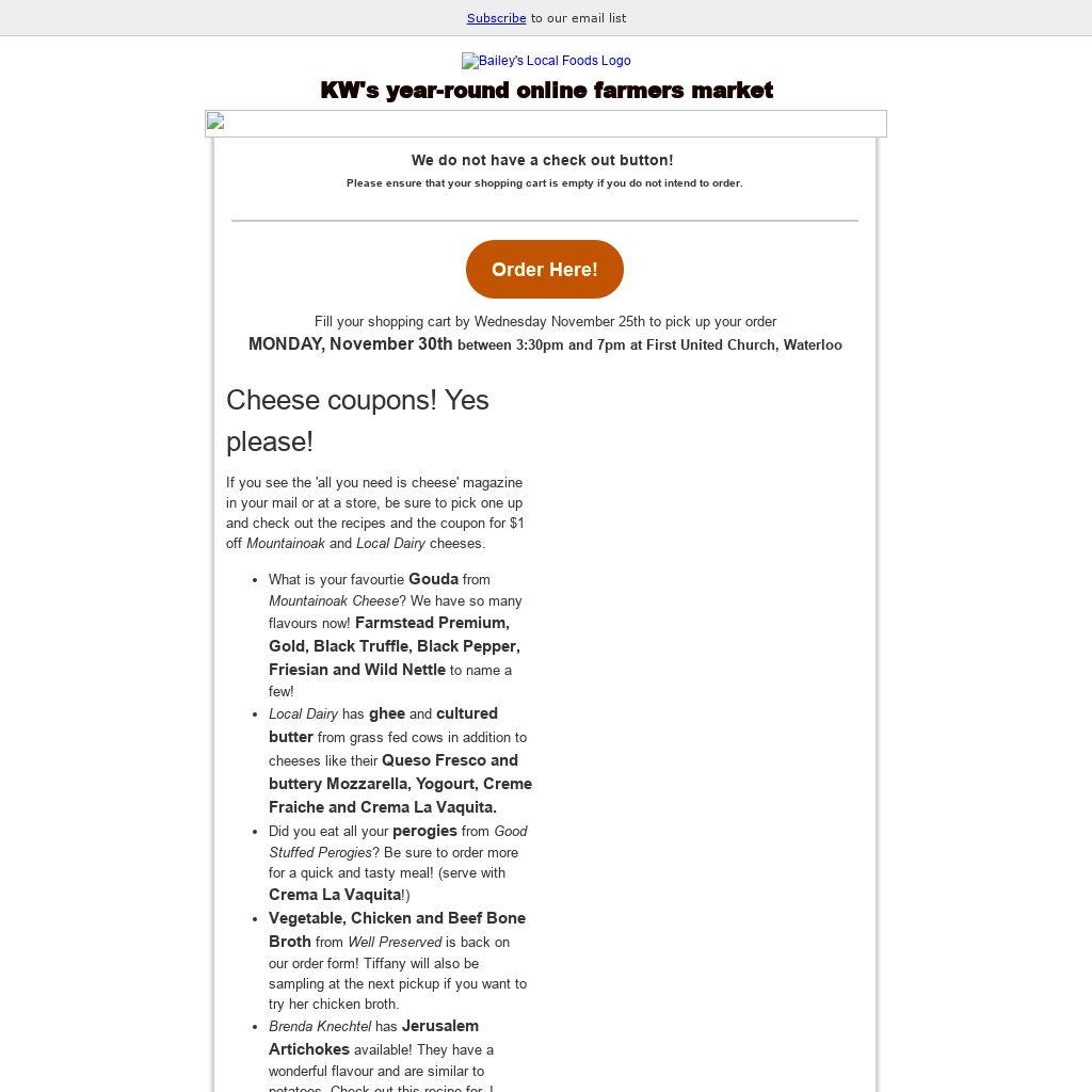 - Vegetable, Chicken and Beef Bone Broth from Well Preserved is back on our order form! Tiffany will also be sampling at the next pickup if you want to try her chicken broth.