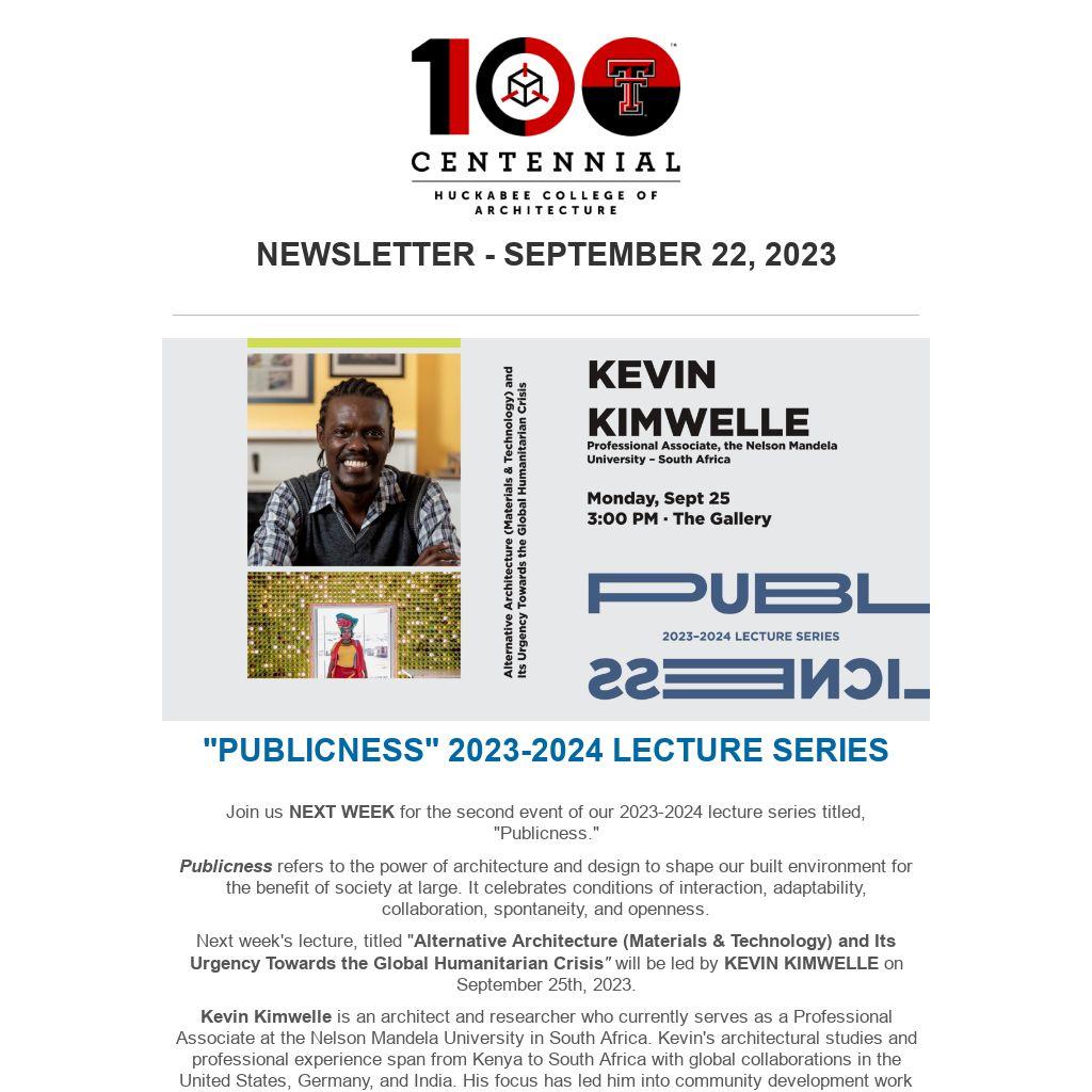Huckabee's lecture was titled "PUBLICNESS - THE POWER YOU CAN BRING TO THE WORLD AS AN ARCHITECT, DESIGNER, AND LEADER!" and kicked off the college's annual guest lecture series for the 2023-2024 academic year.