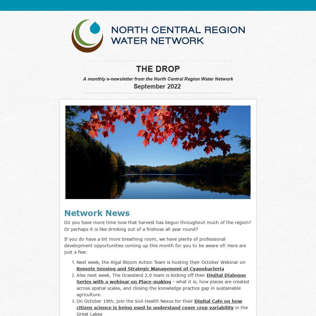 A monthly e-newsletter from the North Central Region Water Network September 2022