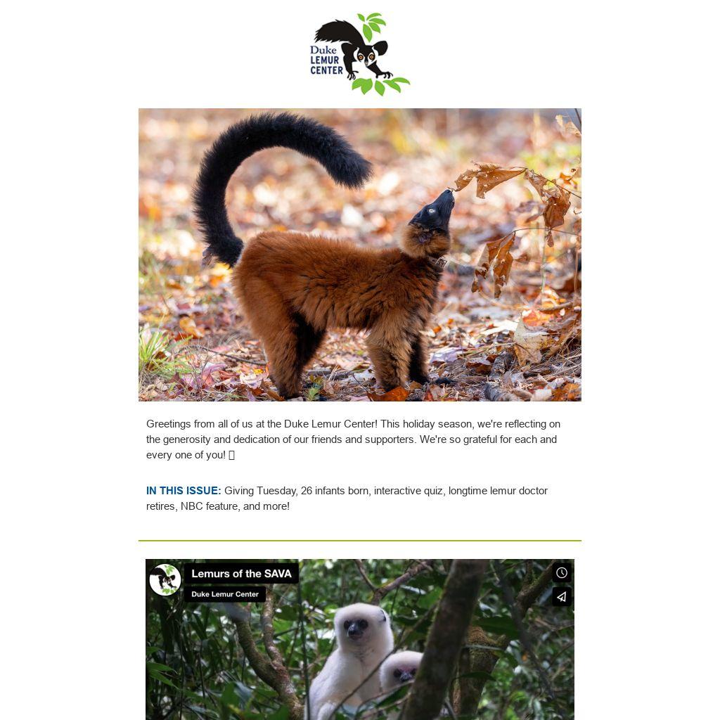 IN THIS ISSUE: Giving Tuesday, 26 infants born, interactive quiz, longtime lemur doctor retires, NBC feature, and more!