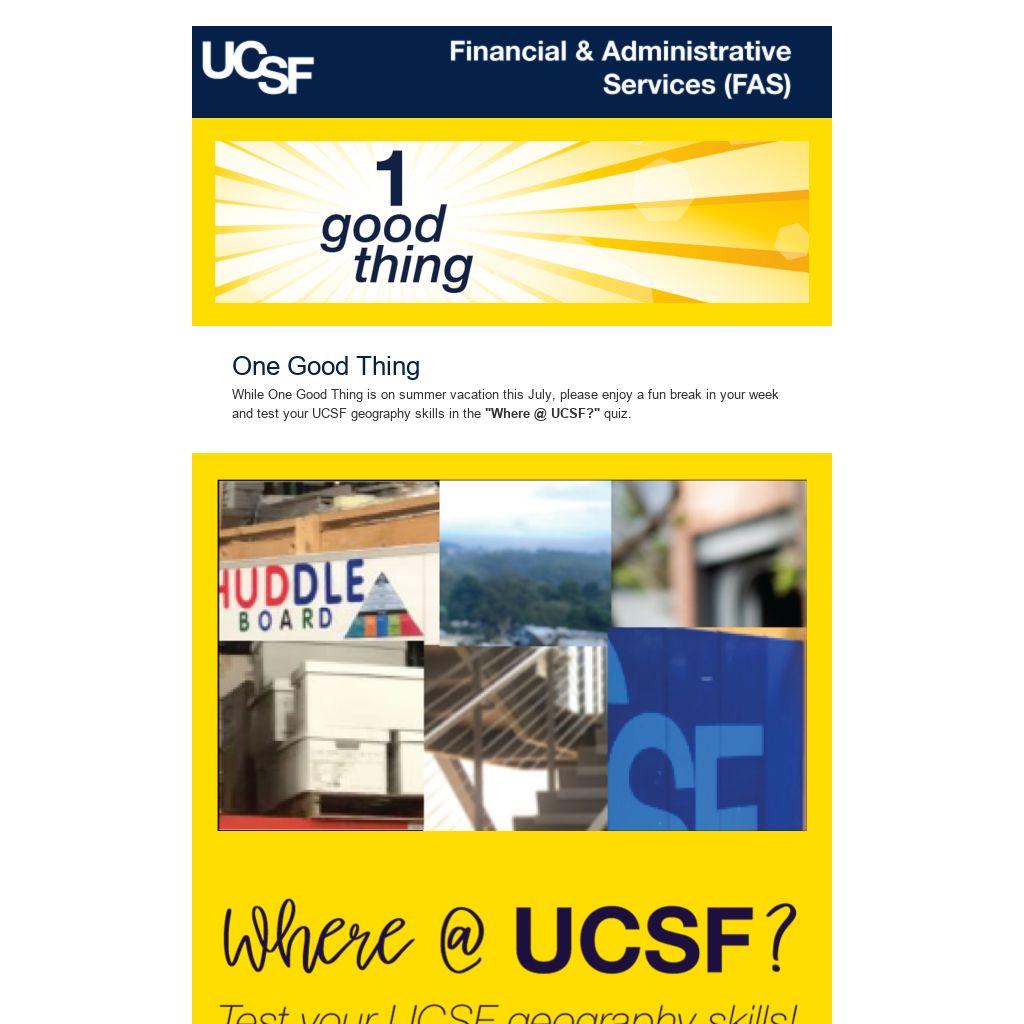 While One Good Thing is on summer vacation this July, please enjoy a fun break in your week and test your UCSF geography skills in the "Where @ UCSF?" quiz.
