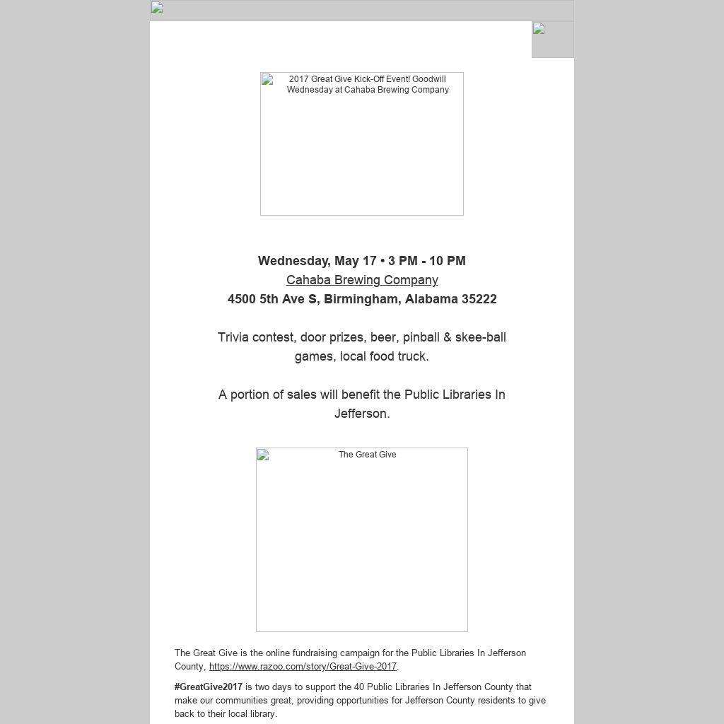 The Great Give is the online fundraising campaign for the Public Libraries In Jefferson County,