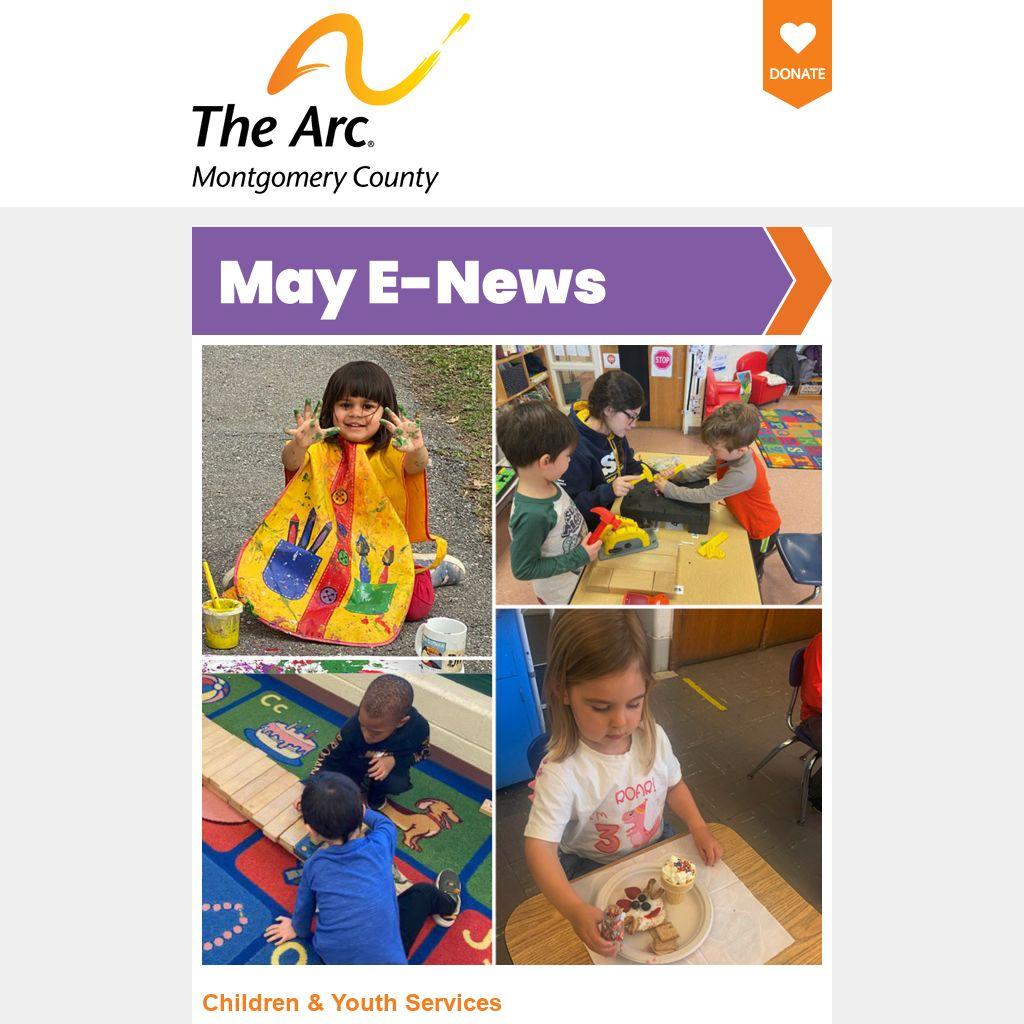 | Children & Youth Services April was a busy and exciting month for The Arc Montgomery County’s Children & Youth Programs! The Week of the Young Child was celebrated at the Karasik Family, Infant & Child Care Center (KFICCC) with special interactive lessons focused on sensory experiences, learning skills, and social development. The week started off with Music Monday, followed by enjoying a treat with a friend on Tasty Tuesday, and finishing out the week with Work Together Wednesday, Artsy Thursday, and wrapping up with Family Friday! The daily activities were new opportunities for the children to develop social, literacy, and fine motor skills, explore math and science, problem-solve, be creative, and use their imaginations through age-appropriate projects.