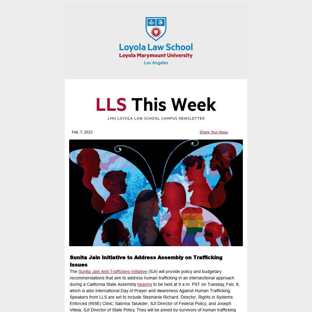 The Sunita Jain Anti-Trafficking Initiative (SJI) will provide policy and budgetary recommendations that aim to address human trafficking in an intersectional approach during a California State Assembly hearing to be held at 9 a.m. PST on Tuesday, Feb. 8, which is also International Day of Prayer and Awareness Against Human Trafficking. Speakers from LLS are set to include Stephanie Richard, Director, Rights in Systems Enforced (RISE) Clinic; Sabrina Talukder, SJI Director of Federal Policy; and Joseph Villela, SJI Director of State Policy, They will be joined by survivors of human trafficking and others in presenting the critical need to shift from a carceral to an intersectional approach to human trafficking to strengthen public safety efforts. Members of the public are encouraged to attend the hearing via live webstream.