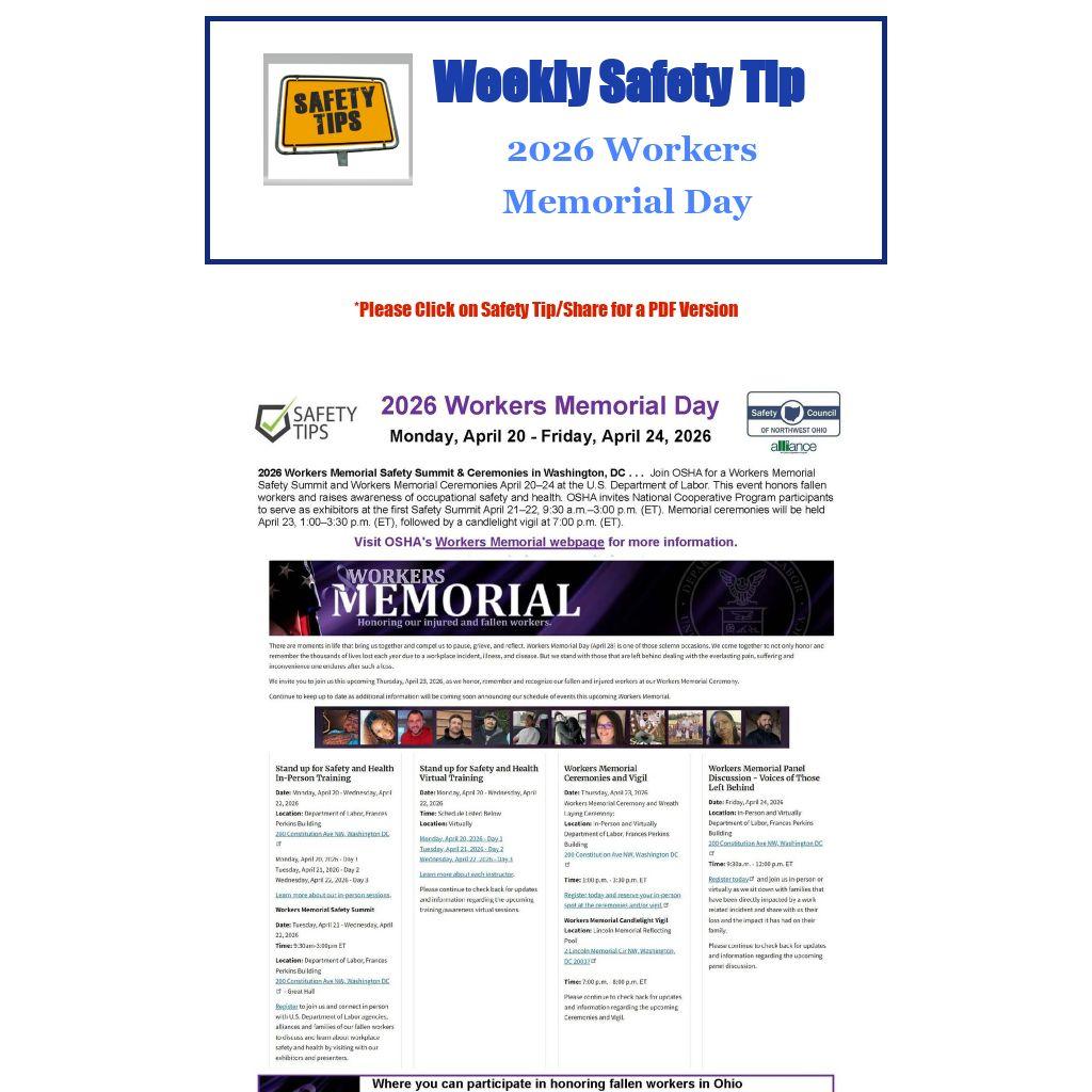 2026 Workers Memorial Day / OSHA is Proposing to Remove Deadline