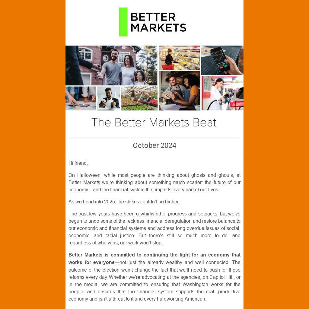 On Halloween, while most people are thinking about ghosts and ghouls, at Better Markets we’re thinking about something much scarier: the future of our economy—and the financial system that impacts every part of our lives.