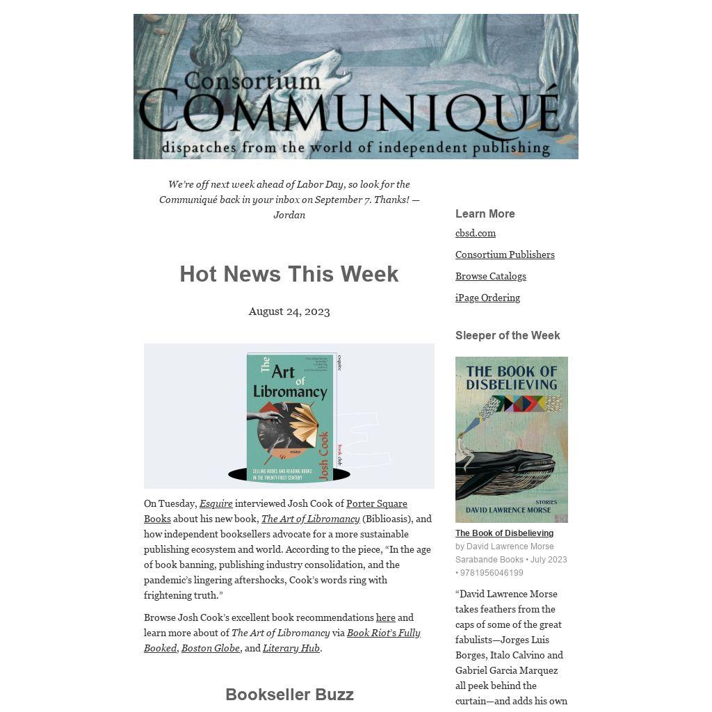 We’re off next week ahead of Labor Day, so look for the Communiqué back in your inbox on September 7. Thanks! —Jordan