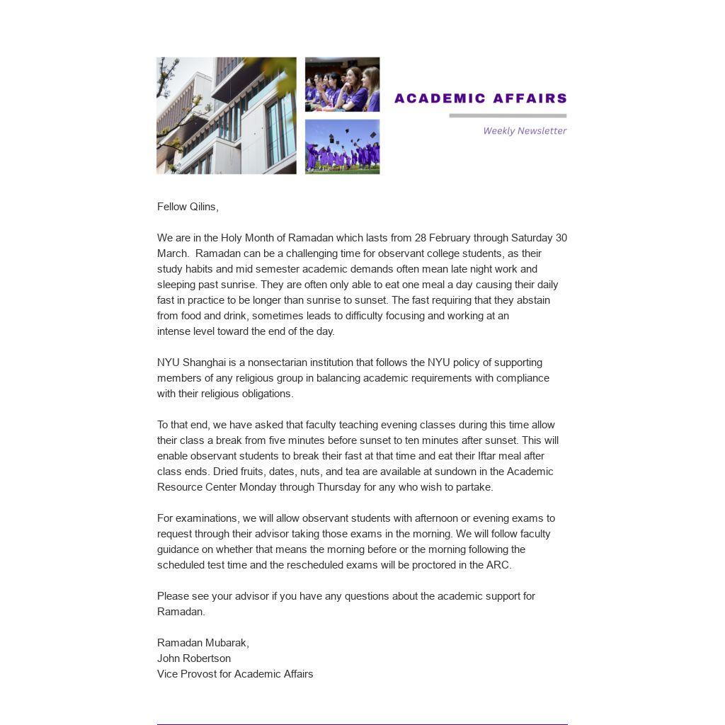 Please see your advisor if you have any questions about the academic support for Ramadan.