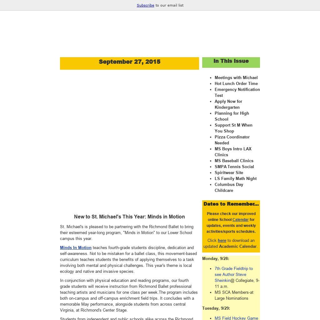 Get connected to keep abreast of St M news, events, calendar changes and information. Current and past issues of "This Week at St. Michael's" are now archived on our website under "News and Events," as well as under "Community."