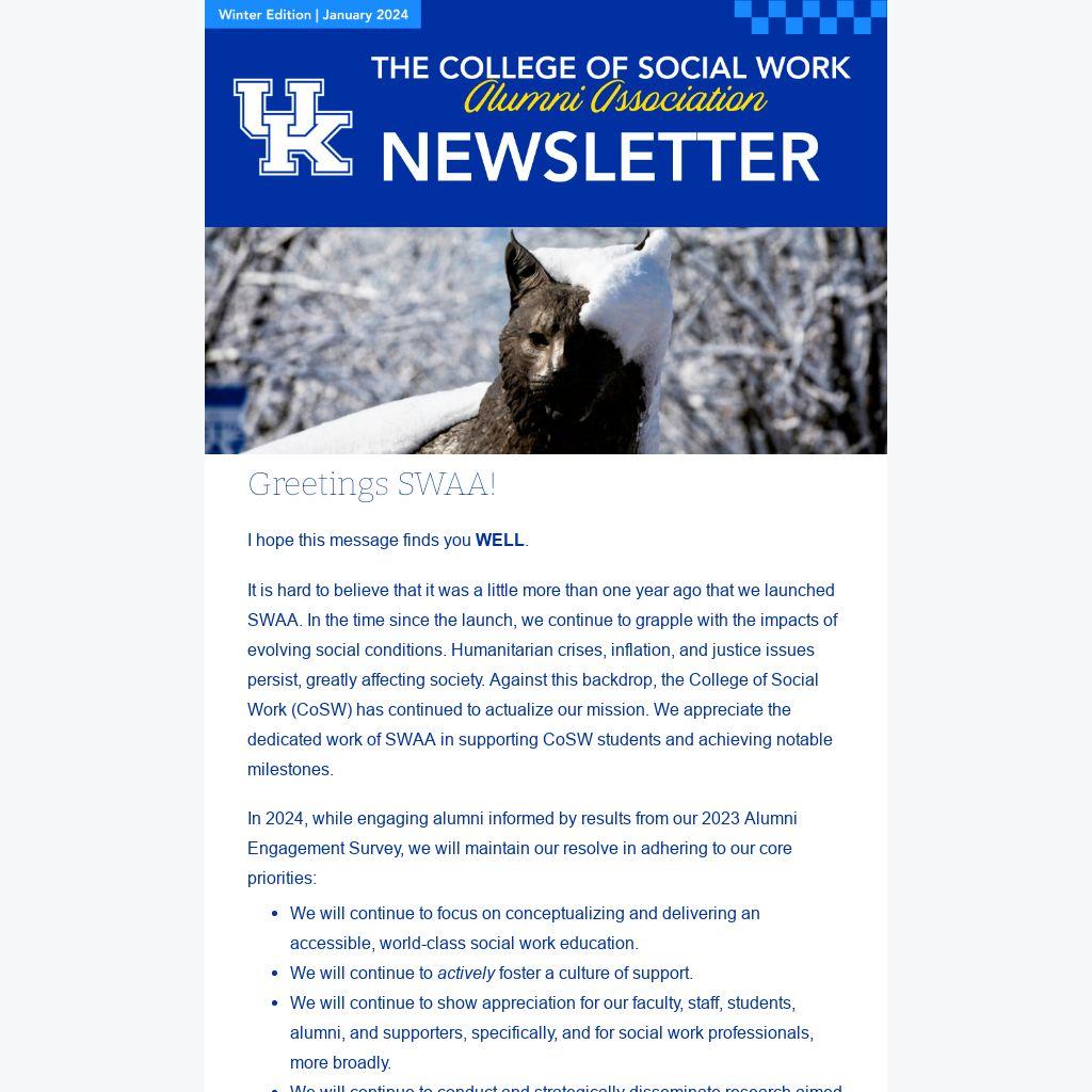 Complete this brief survey about the Winter 2024 SWAA Newsletter for a chance to receive CoSW swag!