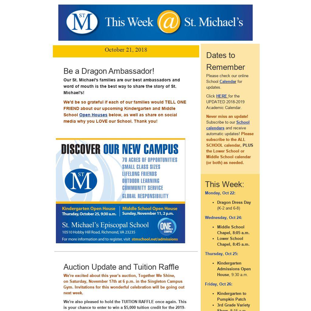 Current and past issues of "This Week at St. Michael's" are now archived on our website under " News and Events," as well as under " Community."