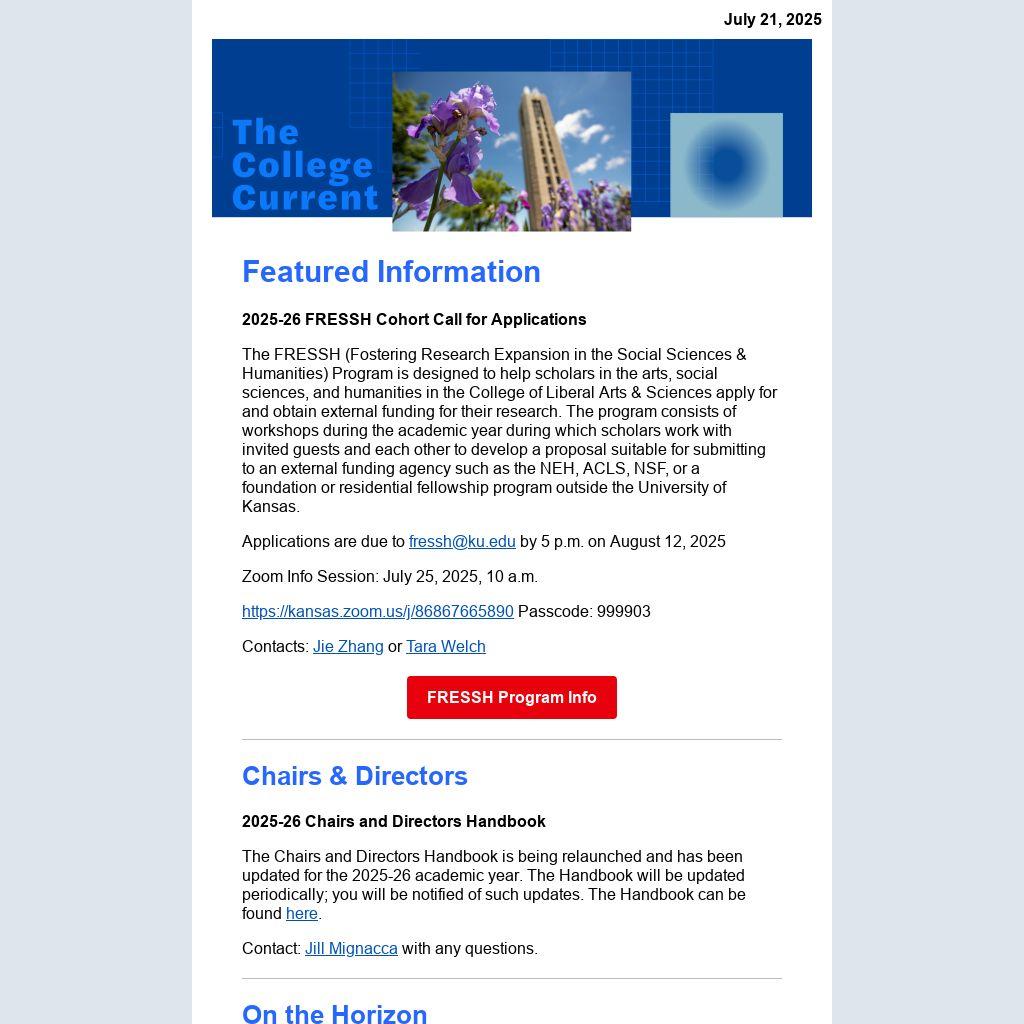 Applications are due to fressh@ku.edu by 5 p.m. on August 12, 2025