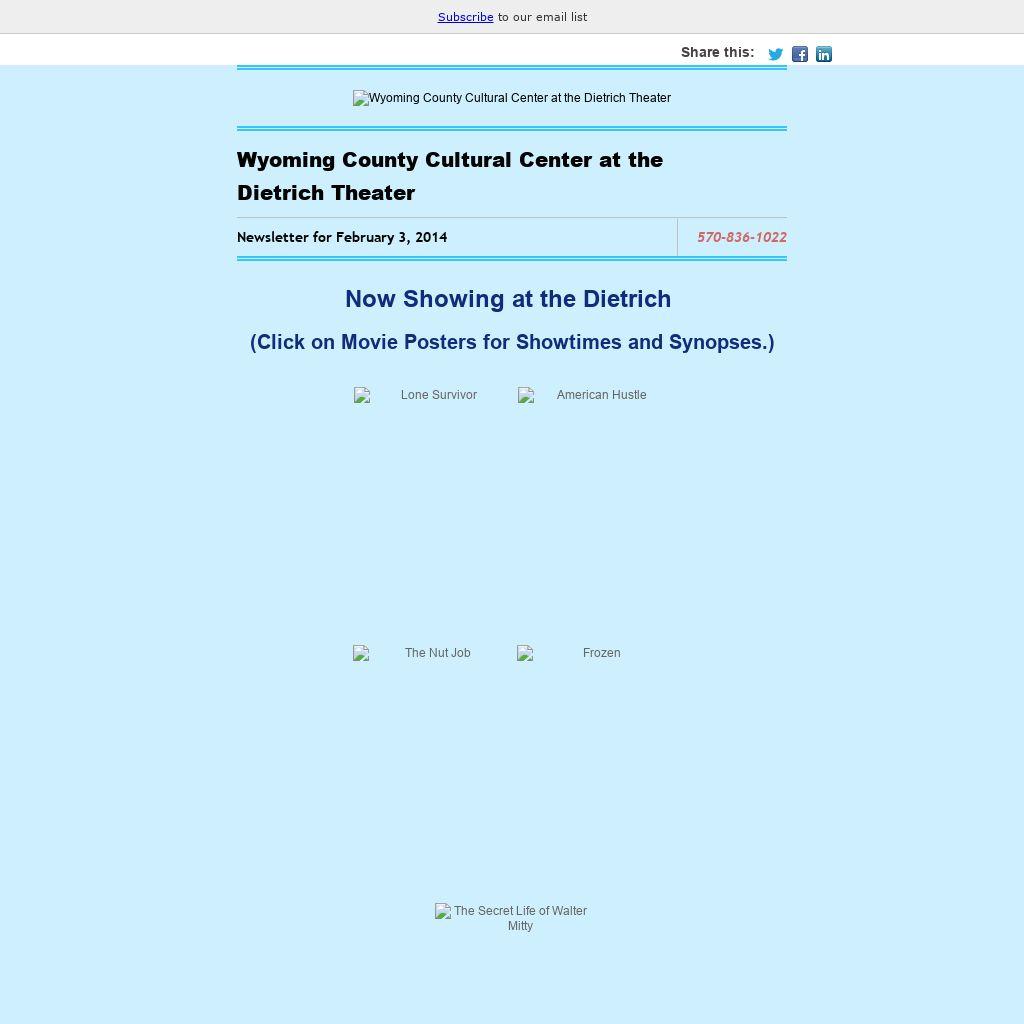 Boy oh boy. We have some really good movies for you one more time. Followed next weekend by some even better movies! It’s been a great January at the theater which is pretty unusual. January is usually a so-so month, but this year it’s been terrific! But then again, it’s always about the movies, and the movies have been pretty good. Plus, bless your wonderful hearts, you waited to see all the movies we couldn’t get over the holidays and came to the Dietrich to see them when we finally got permission to bring them in. And we have tried very hard to bring in every single one you asked for. Which is why this week we are bringing in The Secret Life of Walter Mitty which looks to be a very sweet comedy and Lone Survivor, the highly acclaimed film about the soldier who survives in Afghanistan with a little help from local tribesmen.