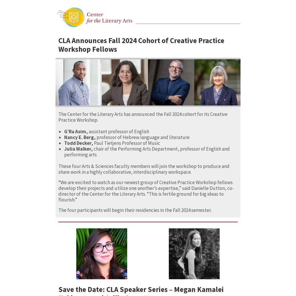 CLA Announces Fall 2024 Cohort of Creative Practice Workshop Fellows |