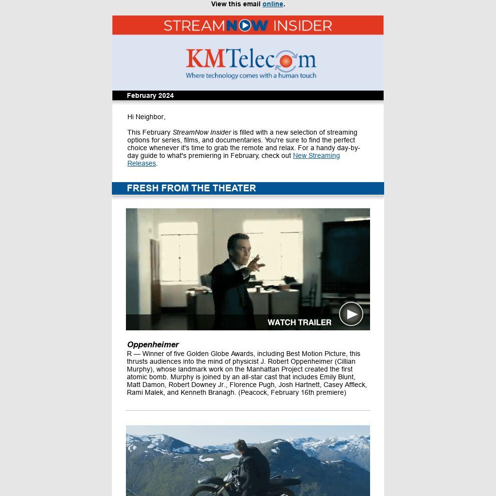 This February StreamNow Insider is filled with a new selection of streaming options for series, films, and documentaries. You're sure to find the perfect choice whenever it's time to grab the remote and relax. For a handy day-by-day guide to what's premiering in February, check out New Streaming Releases. |