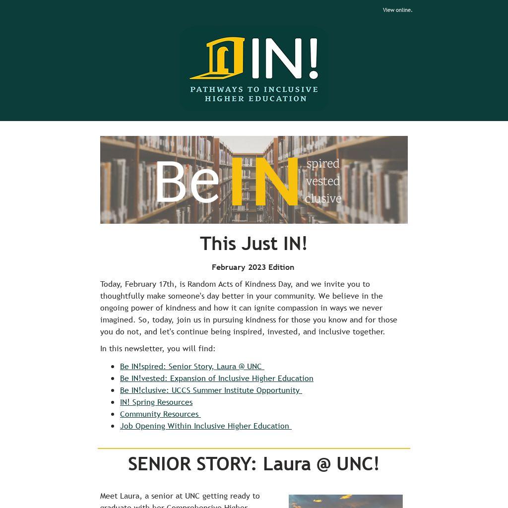 We are passionate about expanding inclusive higher education pathways for students with ID throughout CO. And thanks to the passing of House Bill 22-1107 and the countless people that have advocated alongside us, we are excited to announce that IN! will be facilitating the Inclusive Higher Education Grant Program beginning this March dedicated to opening more doors for students with ID to pursue their college dreams.
