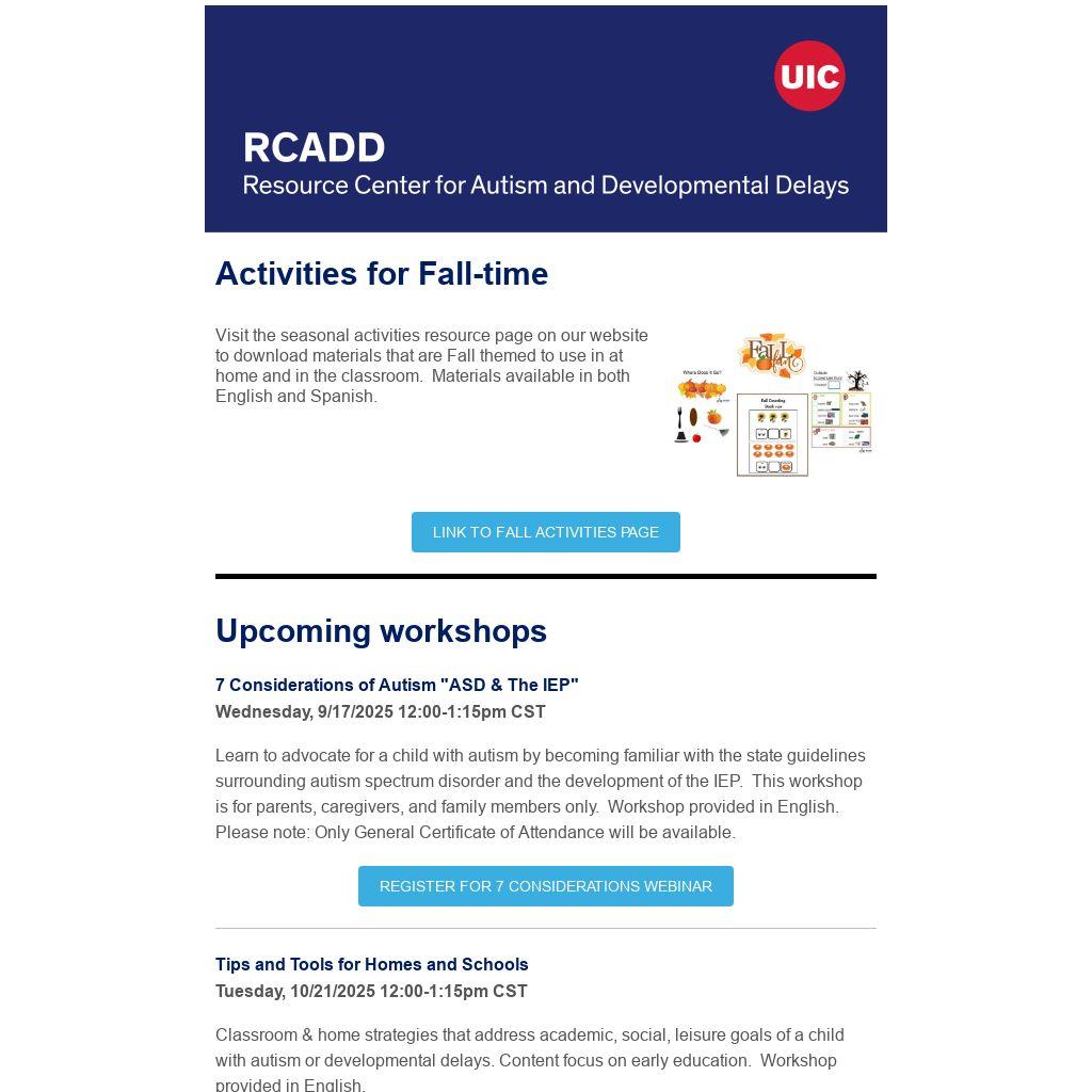 | RCADD is part of UIC's Center for Literacy, which has been serving Chicago communities for over 30 years. Both are programs of the UIC College of Education.