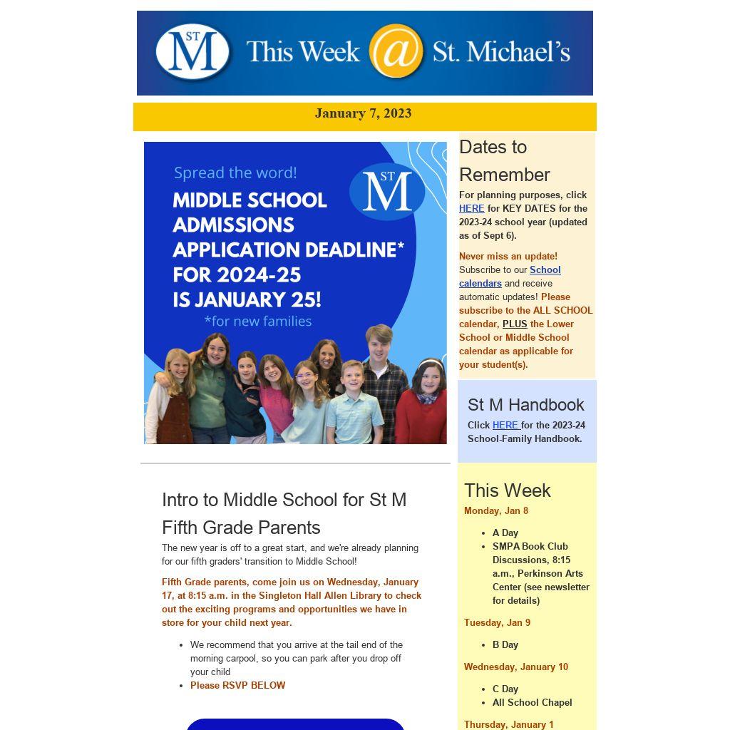 Get connected to keep abreast of St M news, events, calendar changes, and information. Plus, see photos from the first week of school!