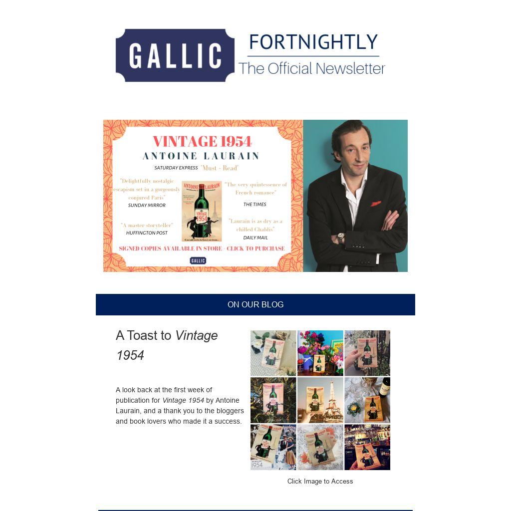 A look back at the first week of publication for Vintage 1954 by Antoine Laurain, and a thank you to the bloggers and book lovers who made it a success.