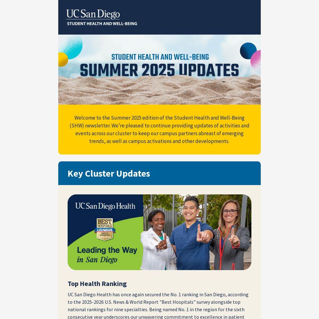Welcome to the Summer 2025 edition of the Student Health and Well-Being (SHW) newsletter. We’re pleased to continue providing updates of activities and events across our cluster to keep our campus partners abreast of emerging trends, as well as campus activations and other developments.