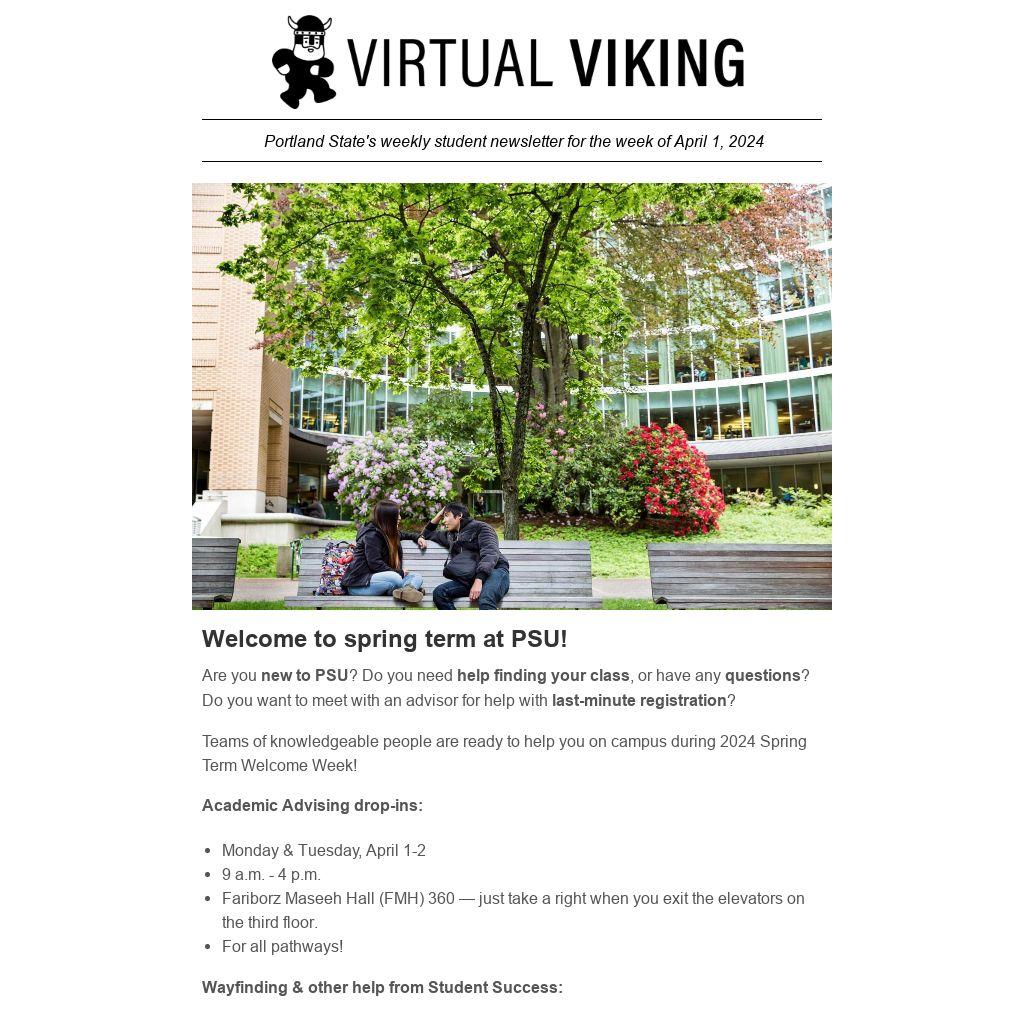 Virtual Viking is Portland State University's student newsletter, published weekly by University Communications. To submit a news item or event, email virtualv@pdx.edu.