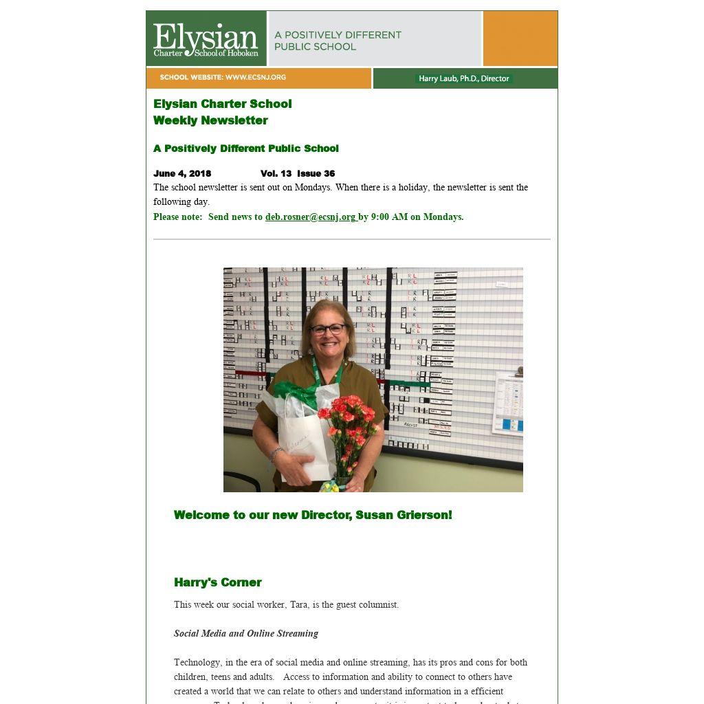 The school newsletter is sent out on Mondays. When there is a holiday, the newsletter is sent the following day.