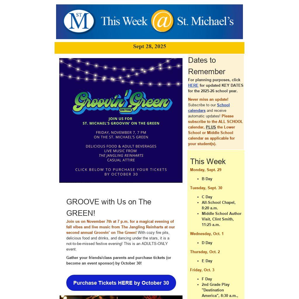 High School Planning for 8th Grade FamiliesSt. Michael's invites our 8th grade families to attend our High School Planning Program this Friday, October 3, Noon-2:30 p.m., in the Middle School Allen Library. (A digital letter was sent to Class of 2026 families on Friday containing our Guide to the High School Process sitelet.)