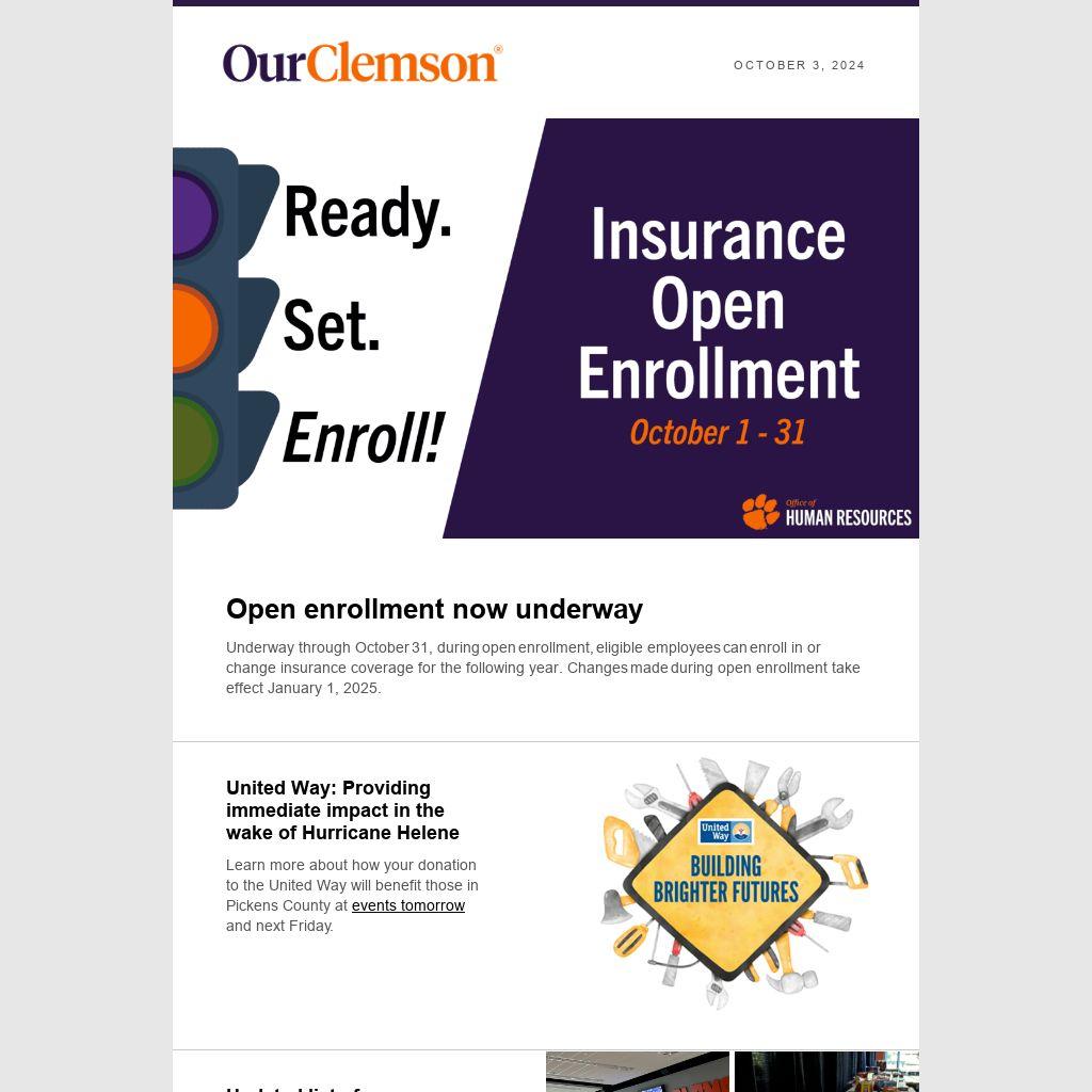 Underway through October 31, during open enrollment, eligible employees can enroll in or change insurance coverage for the following year. Changes made during open enrollment take effect January 1, 2025.