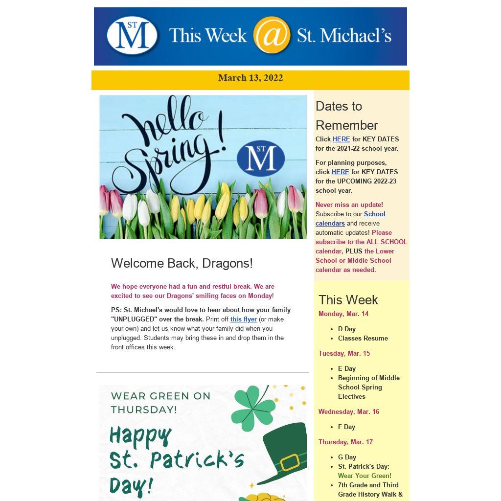 Get connected to keep abreast of St M news, events, calendar changes, and information.