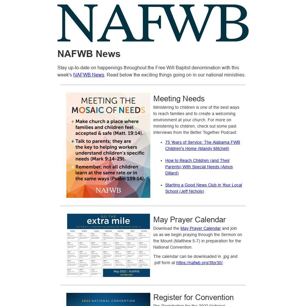 Share this newsletter with a friend and invite them to subscribe to receive all of our future emails. You can subscribe or find past newsletters at www.nafwb.org/news.