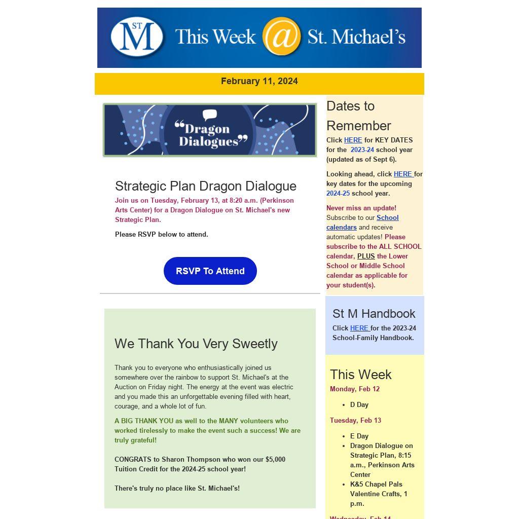 Join us on Tuesday, February 13, at 8:20 a.m. (Perkinson Arts Center) for a Dragon Dialogue on St. Michael's new Strategic Plan.