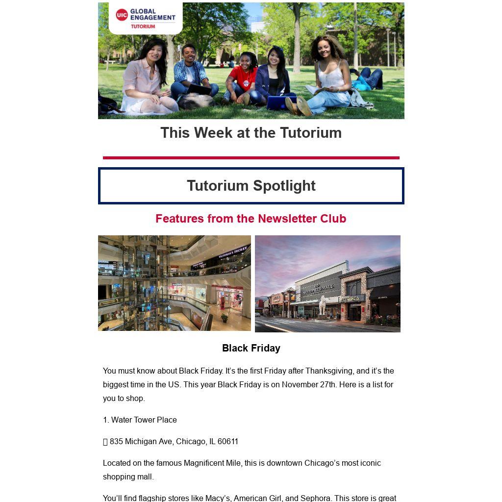 Are you planning to continue to study English here at the Tutorium? We sure hope so! Don't forget to register for classes for the Spring semester. Register by December 2, 2025, for a 5% discount! You received an email with instructions on how to register. Search for it in your UIC email. If you attempt to register and receive a 'HOLD' message, please contact tutorium@uic.edu. (*Not available to Shorelight UIC Global students.)