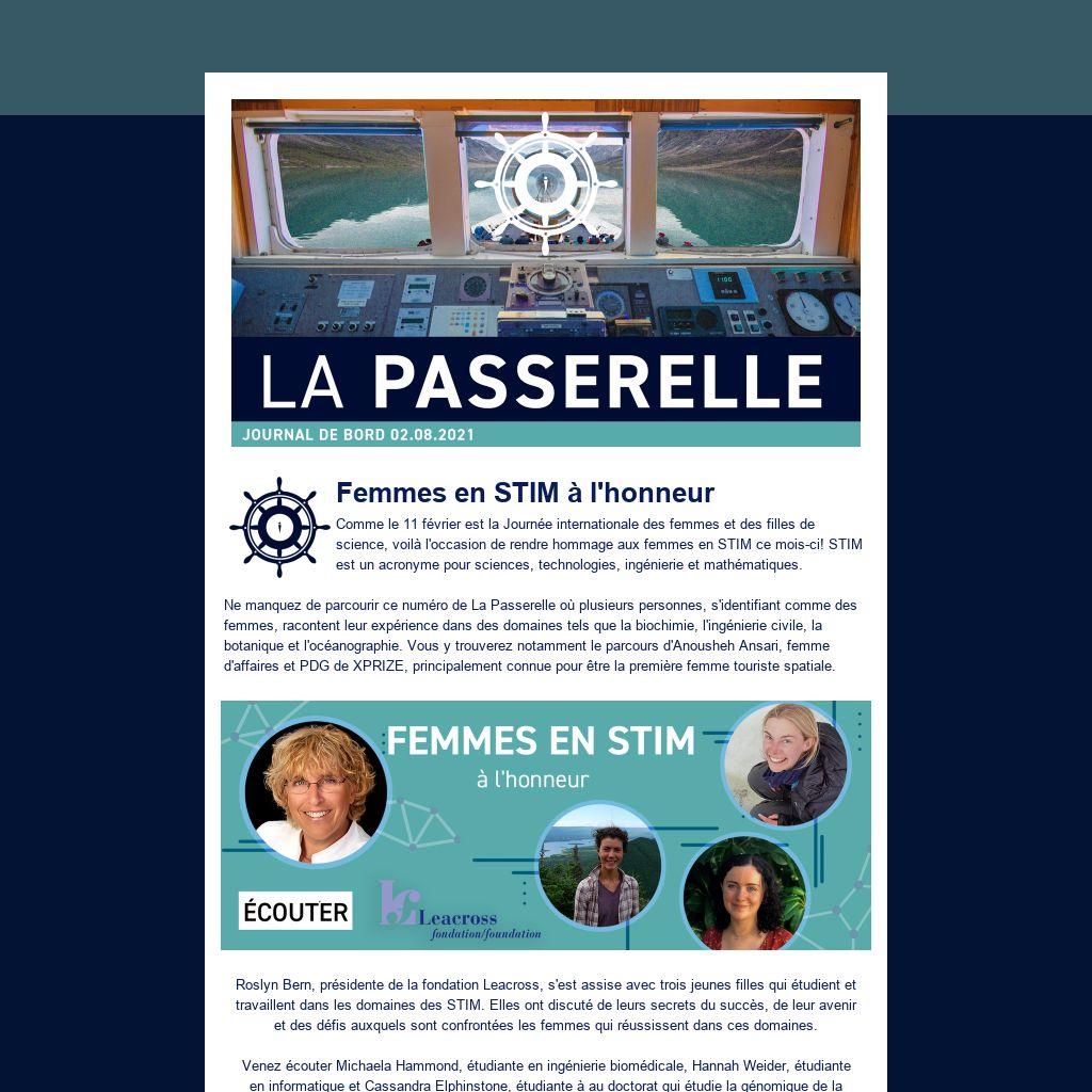 Ne manquez de parcourir ce numéro de La Passerelle où plusieurs personnes, s'identifiant comme des femmes, racontent leur expérience dans des domaines tels que la biochimie, l'ingénierie civile, la botanique et l'océanographie. Vous y trouverez notamment le parcours d'Anousheh Ansari, femme d'affaires et PDG de XPRIZE, principalement connue pour être la première femme touriste spatiale.